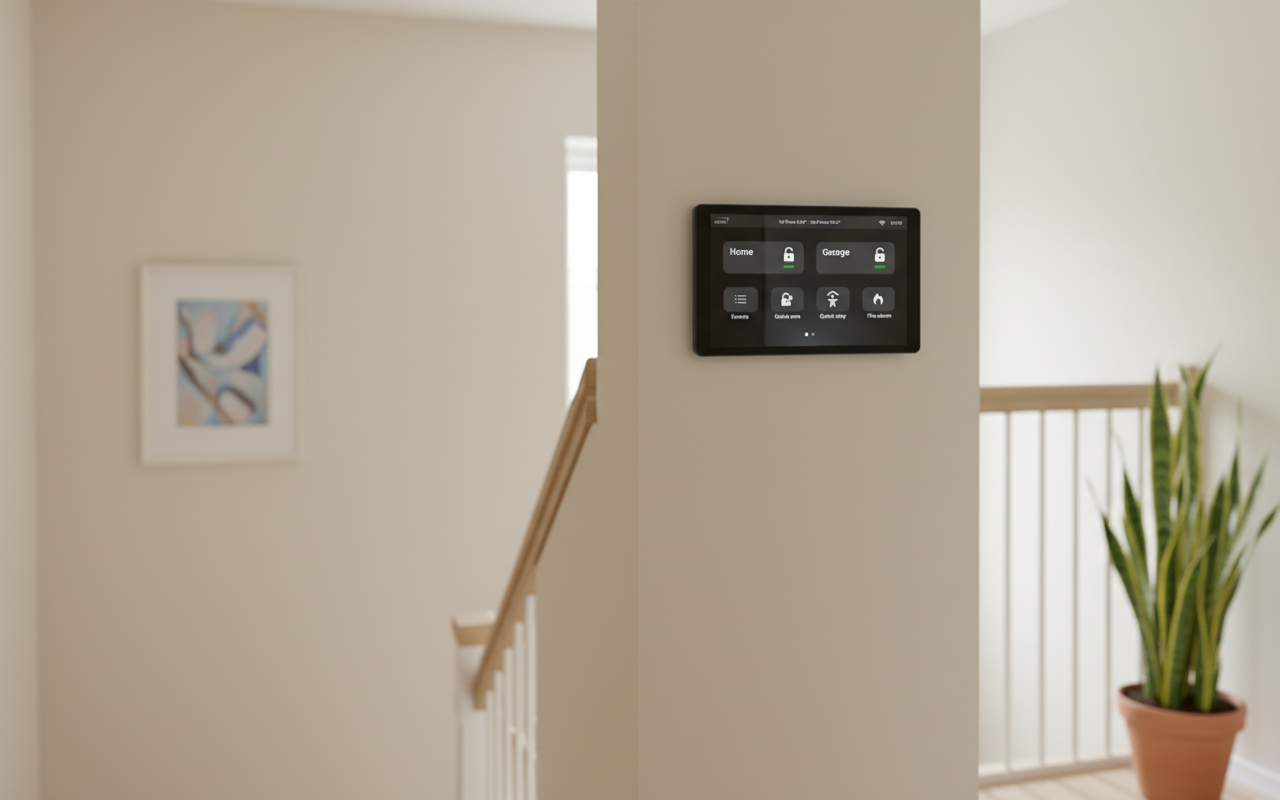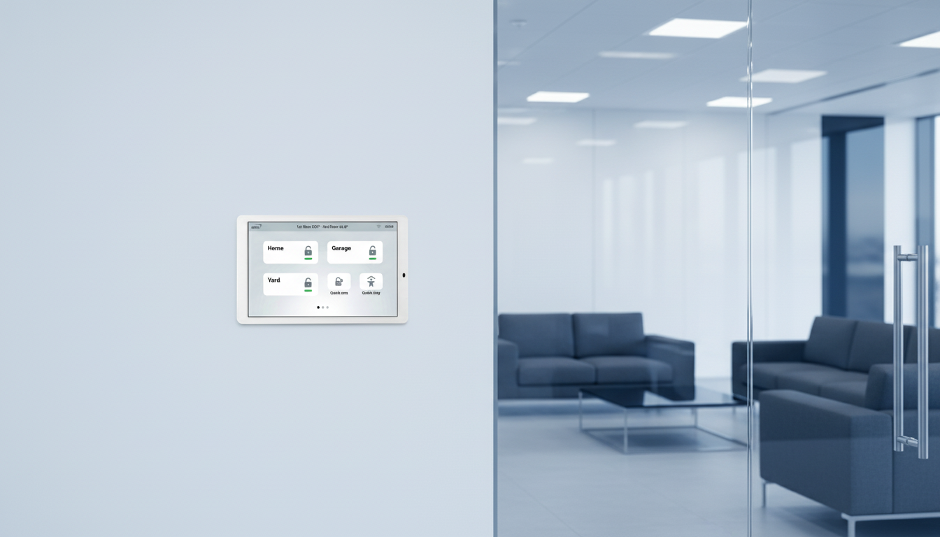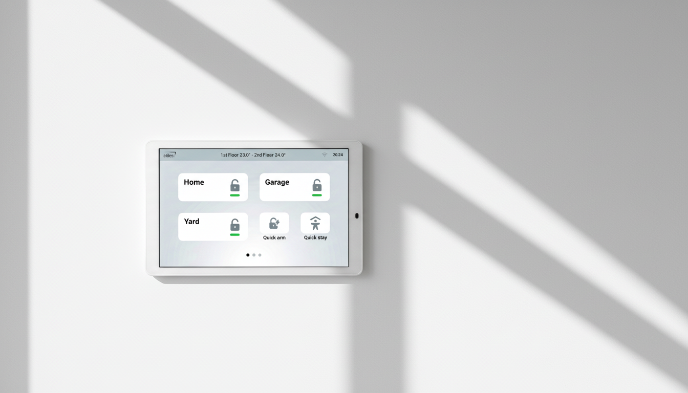 Stiklinis jutiklinis ekranas harmoningai sujungia eleganciją ir kasdienį funkcionalumą. Dėl plono profilio įrenginys natūraliai įsilieja į modernų interjerą, išlikdamas pagrindiniu apsaugos sistemos valdymo centru.